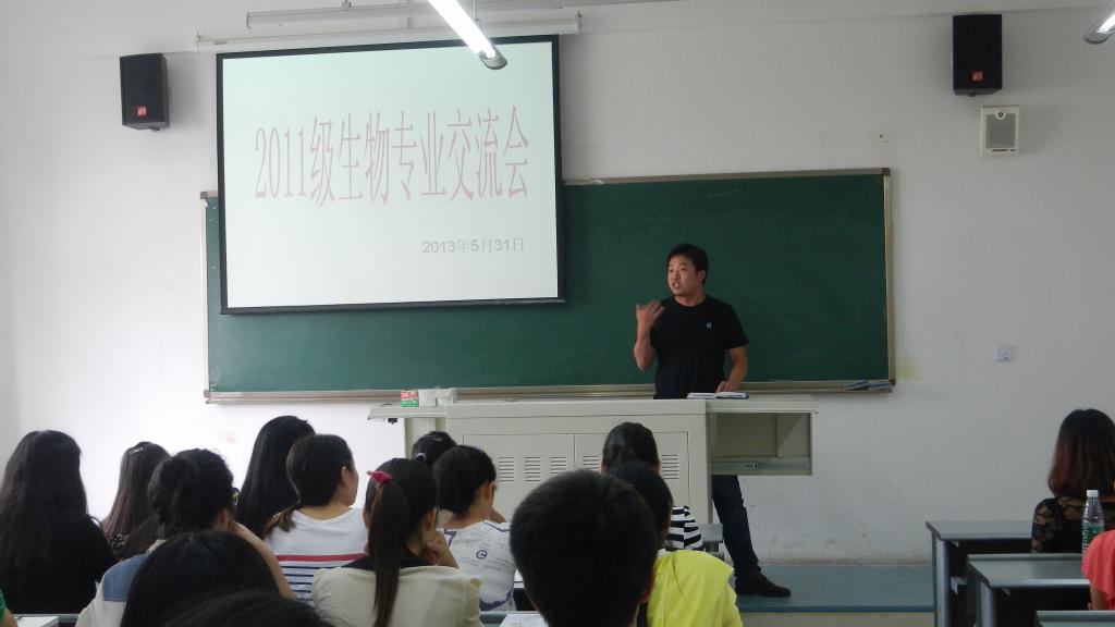 2013年5月31日下午2点,由酒类与食品工程系李俊儒老师牵头筹备的“2011级食品生物技术专业交流会”在公司二教B101教室成功举行。酒类与食品工程系食品生物技术2011级全体同学参加了此次交流会。