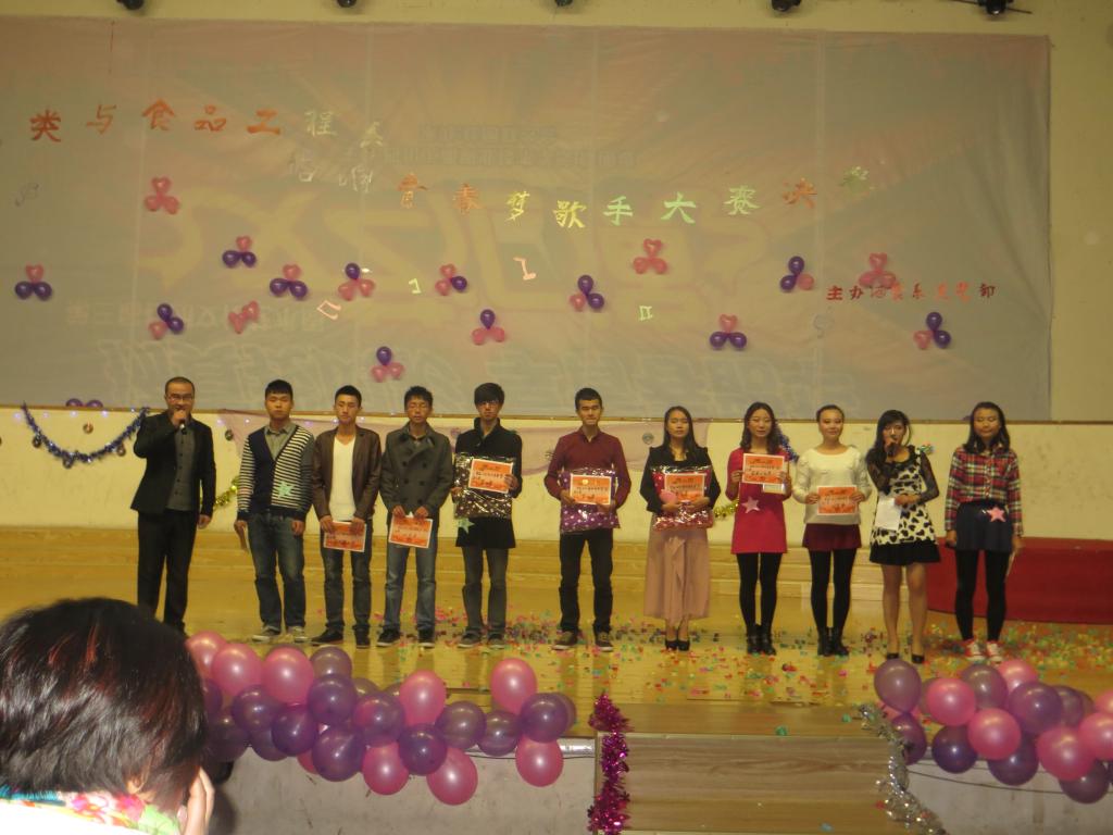 11月28日晚,我系在素质拓展馆成功举行“酒食系2013年校园歌手大赛决赛”。本次大赛特邀我系领导朱克永主任、余彩霞书记、教师李俊儒、段琼、郭成龙等五位嘉宾担任评委组成员,我系全体员工观看了此次比赛。