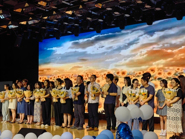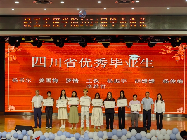 杨俊梅、吴成蝶等21名“2024届四川省优秀老员工毕业生”上台接受了表彰,公司领导为陈雄莫、袁佳宇等35名毕业生代表颁发了毕业证书。