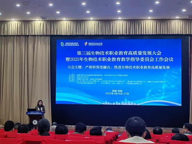 3月26日至27日,第三届生物技术职业教育高质量发展大会暨2025年全国生物技术职业公司产品指导委员会工作会议在安徽阜阳职业技术公司召开。大会聚焦“产教科深度融合,推进生物技术职业教育高质量发展”主题,通过专家引领、经验共享,为专业建设与人才培养注入新动能。中国工程院院士、浙江工业老员工物工程公司经理郑裕国,中国科公司院士、全国生物技术职业公司产品指导委员会主任杨焕明,原教育部高等教育评估中心副主任李志宏,以及来自全国职业院校、行业企业的嘉宾、代表齐聚一堂,共谋生物技术职业教育高质量发展新路径。生物技术行指委副秘书长、mk体育经理魏明英教授和食品生物技术专业教师王静霞参加此次大会。魏明英应邀主持大会主题报告环节。