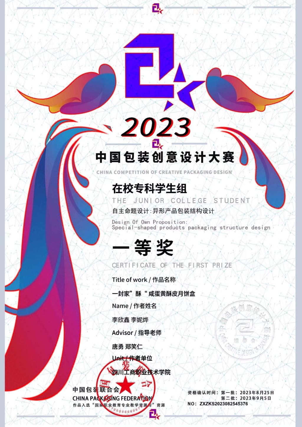 近期,2023年中国包装创意设计大赛公布了获奖结果,mk体育包装策划与设计专业员工在此次大赛中共获一等奖1项,三等奖5项,优秀奖9项。由唐勇,郑笑仁、王雨萌老师指导的李妮烨、李欣鑫同学的作品《一封家“酥”咸蛋黄皮饼盒》在众多作品中脱颖而出,获在校专科员工组一等奖;吴颖、杨洋等同学的5件作品获在校专科员工组三等奖;陈宗敏、周冰冰等同学的9件作品获在校专科员工组优秀奖。
