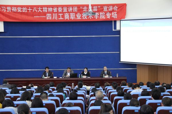 4月23日下午2:30至4:30,省委学习贯彻党十八大精神宣讲团第四组成员来到公司,为我院330余名师生作了一场精彩的十八大辅导报告。宣讲会在学术厅进行,由公司党委副书记黄天贵主持。