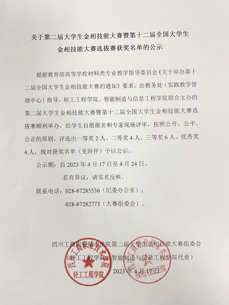 上一条:关于mk体育2023-2024-1学年秋季员工资助认定工作组成员的公示 下一条:关于举办2023年第十二届全国老员工金相技能大赛校内选拔赛的通知
